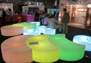 Banco Moon Led RGB de 4 watts com baterias recarregáveis, tem controle remoto infravermelho com 24 funções para a seleção de cores, que possui escala RGB, controle de velocidade lançada, controle o brilho e on / off.
